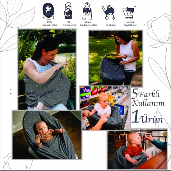 Esnek yapısı sayesinde annenin üzerine geçirilerek dışarıda güvenli ve mahrem bir emzirme alanı oluşturur.