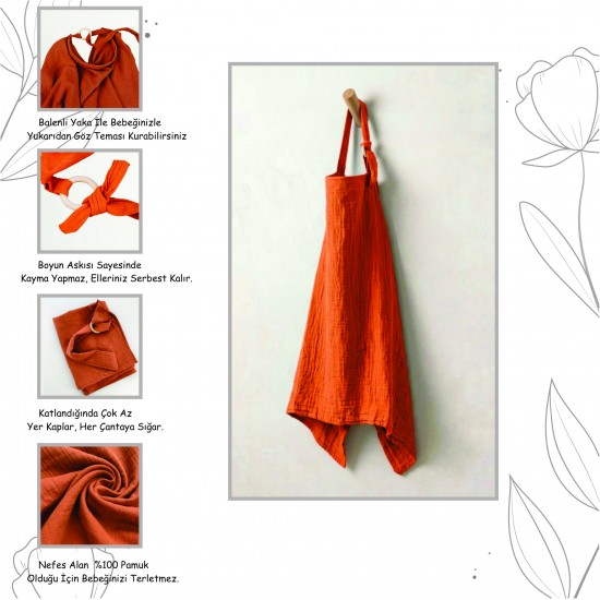 Emzirme önlüğü sadece emzirme sırasında değil; aynı zamanda bebek arabasında güneşlik, omuz örtüsü veya bebeği uyuturken hafif bir örtü olarak da kullanılabilir.